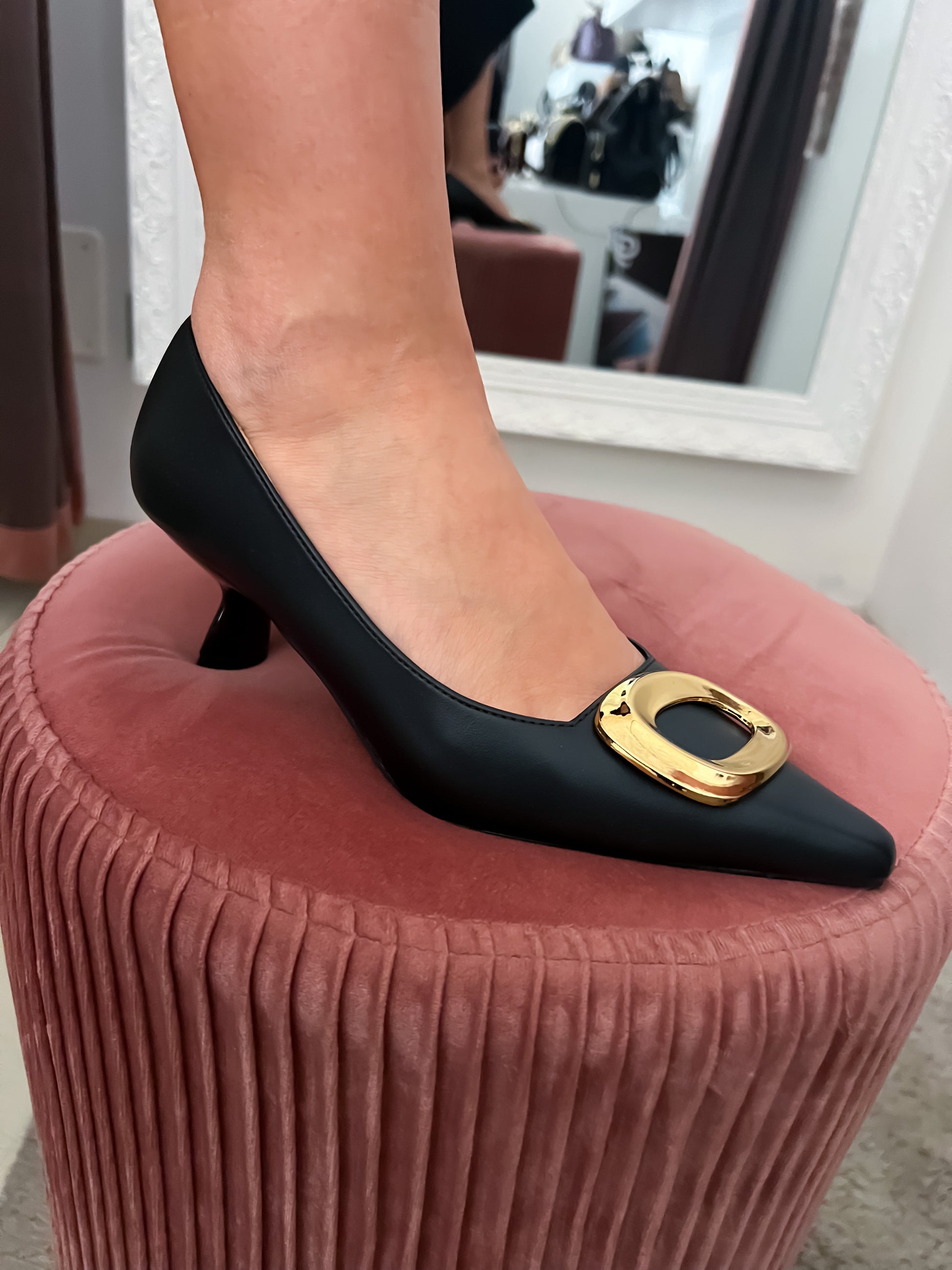Décolleté basse con tacco comodo in Vera Pelle Gold & Gold.