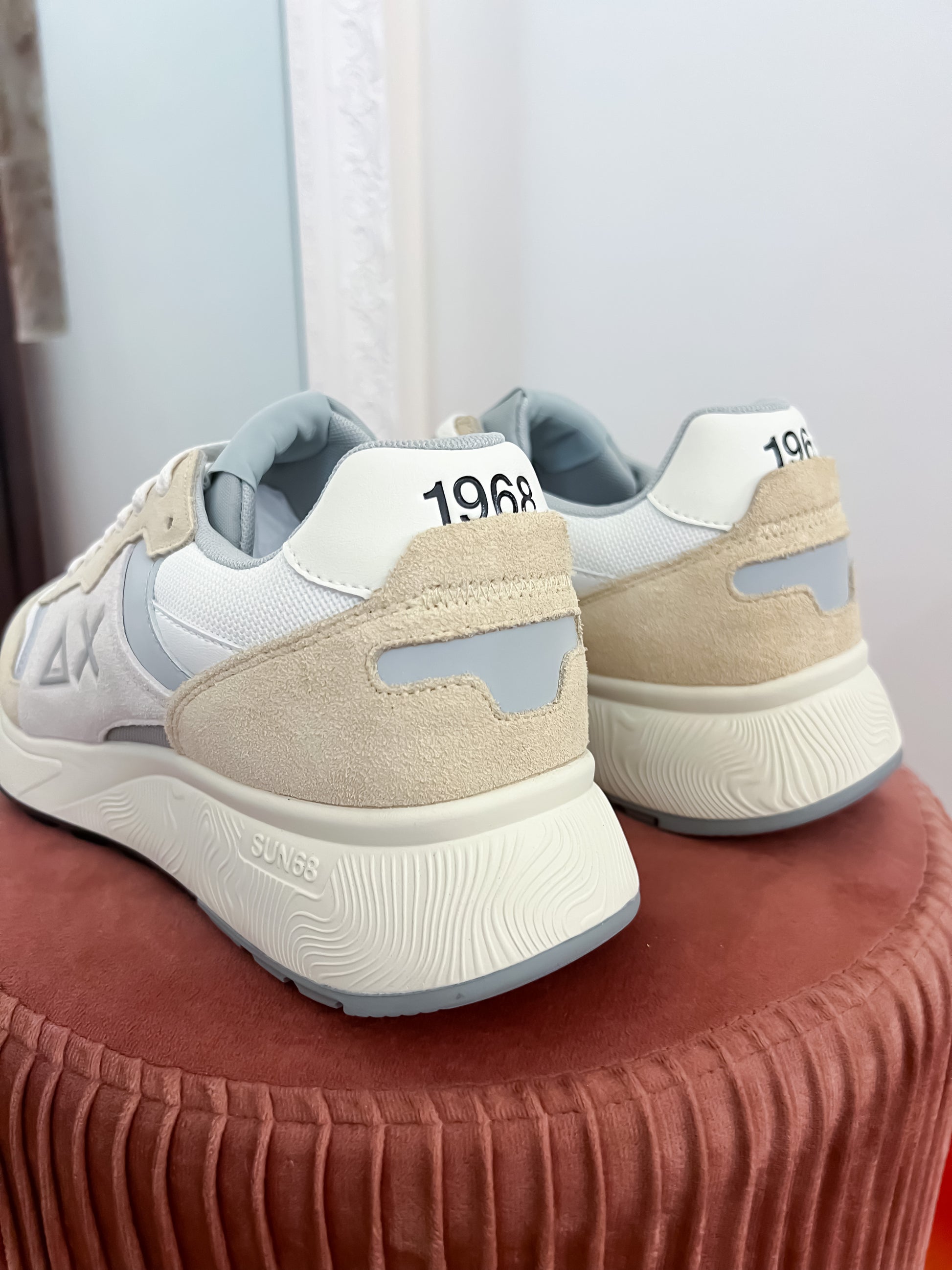 Accogliente nella forma ed essenziale nel look, Sun Daddy è la sneaker SUN68 ispirata al mondo running. Progettata per un lifestyle dinamico, si caratterizza per la silhouette slanciata e la costruzione leggera che offre massima libertà di movimento. Indossala con i pantaloni jogging e una felpa della collezione per un total look dinamico, oppure abbinala a un pantalone chino per un twist più curato.