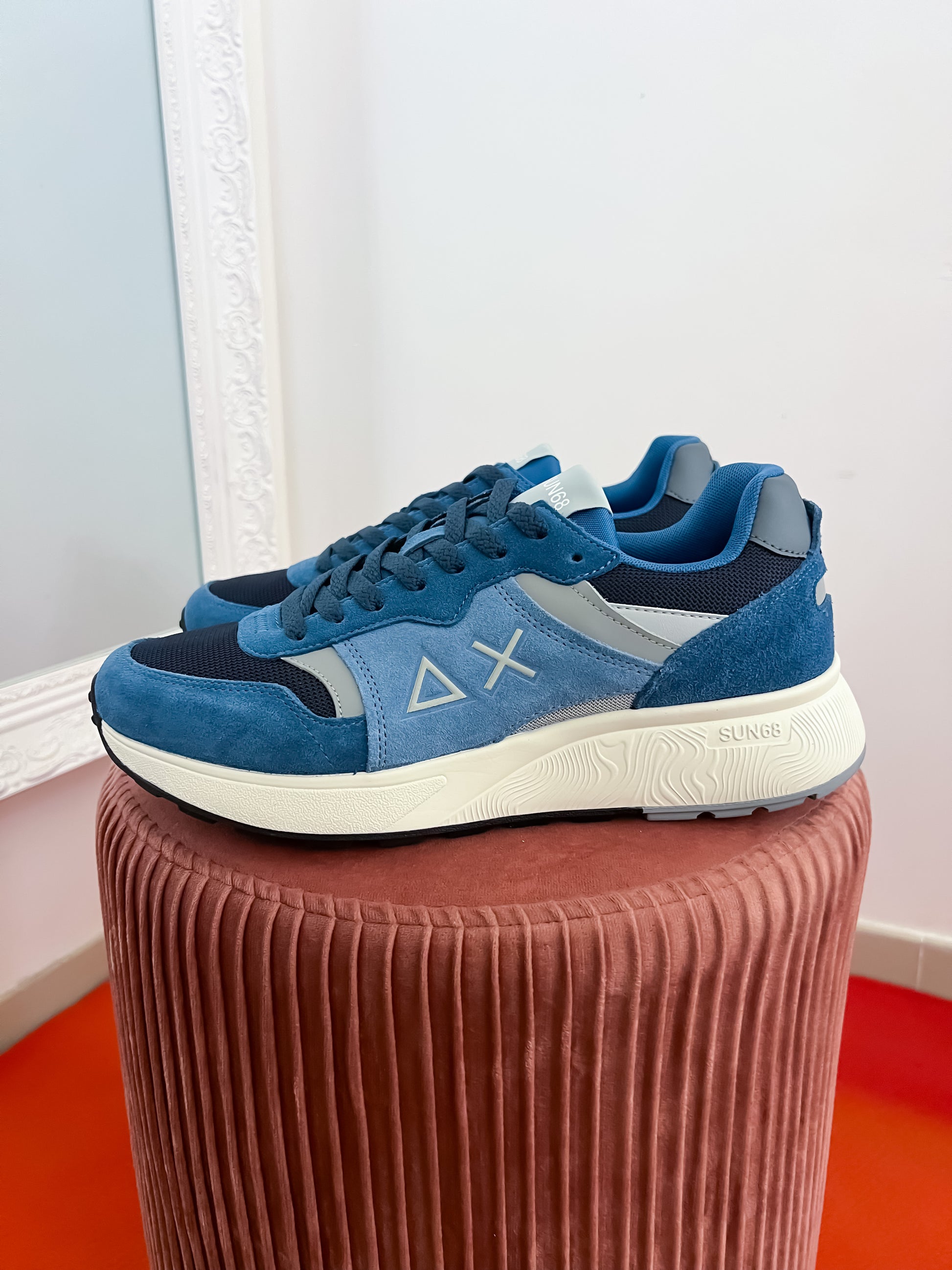 Accogliente nella forma ed essenziale nel look, Sun Daddy è la sneaker SUN68 ispirata al mondo running. Progettata per un lifestyle dinamico, si caratterizza per la silhouette slanciata e la costruzione leggera che offre massima libertà di movimento. Indossala con i pantaloni jogging e una felpa della collezione per un total look dinamico, oppure abbinala a un pantalone chino per un twist più curato.