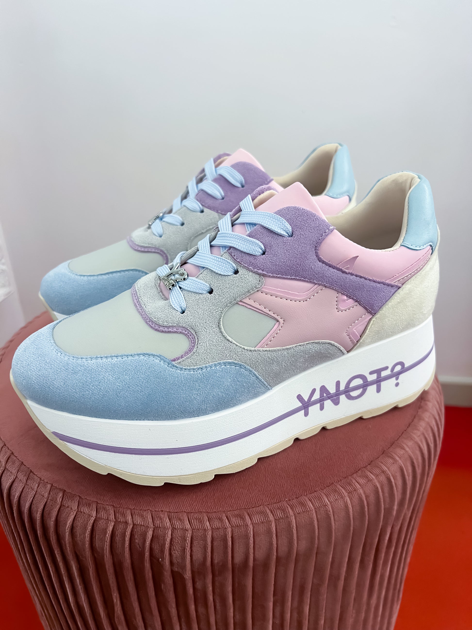 Sneaker Ynot? da donna realizzate in Vera Pelle. Il modello ha una linea comoda e versatile con sottopiede in lycra® e suola in gomma alta 5 cm. Presenta logo sulla linguetta e tallone a contrasto.